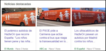 “Un autobús contra los niños transexuales”, “el autobús del odio” o un “mensaje tránsfobo circula por Madrid”.