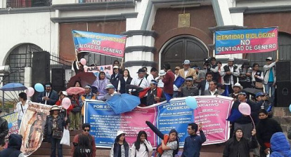 Detalle de la concentración en Cuzco; "igualdad de oportunidades, sí, igualdad de género, no", especifican