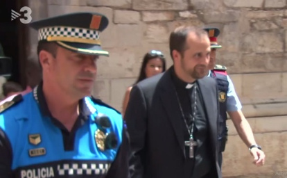 El obispo Novell abandona la parroquia de Tárrega escoltado por dos agentes