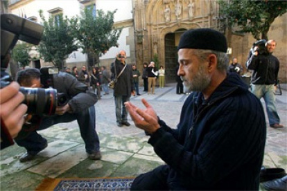 Mansur Escudero (1947-2010), rezando ante la catedral de Córdoba para reclamar su utilización como mezquita.