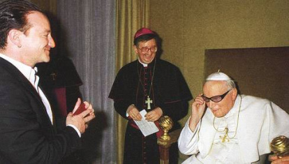 En 1999, a puertas del Jubileo del año 2000, Bono se reunió con San Juan Pablo II, en el marco de los esfuerzos del líder de U2 para que al entrar al segundo milenio se redujera la deuda externa de los países más pobres.