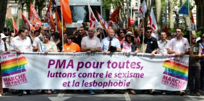 Aunque con importantes contradicciones internas y en conflicto con algunos grupos feministas, el lobby LGTBI ha optado en general por apoyar los vientres de alquiler (GPA en francés: gestación por otro) para facilitar que las parejas de gays puedan "tener" hijos, y por reivindicar para las parejas de lesbianas el acceso a los programas públicos de ayuda a la procreación (PMA, procreación médicamente asistida).