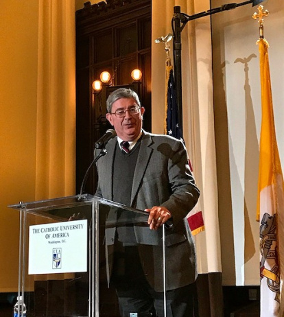George Weigel, durante una conferencia en la Universidad Católica de América el pasado 22 de enero. Foto: Katie Ward.