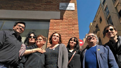 La alcaldesa de Barcelona, Ada Colau, en la Barceloneta ya con la calle con el cambio de nombre