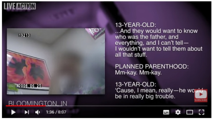 El informe cita el caso de una adolescente que dijo haber sido violada por su padre y a quien se le practicó dos abortos en Planned Parenthood. También le dieron un DIU (dispositivo intrauterino) después del segundo aborto para evitar embarazos adicionales. En ninguno de los casos se informó del abuso a las autoridades, a pesar de estar muy por debajo de la edad de consentimiento.