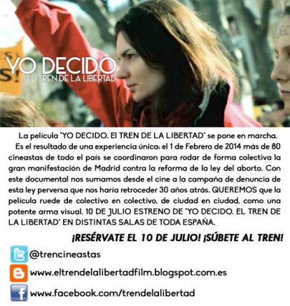 Hay una lista completa de mujeres cineastas que se volcaron en apoyar la ley que permite eliminar bebés discapacitados (y cualquier otro) con el documental El Tren de la Libertad, 40 minutos de alabanzas al feminismo abortista, ni un minuto para el feminismo provida, ni un fotograma para el ser humano en su fase prenatal.