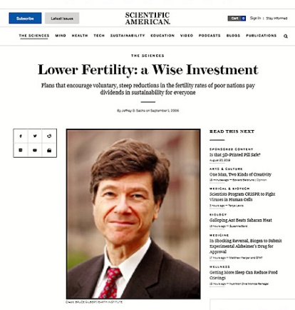"Menor fertilidad: una sabia inversión", artículo de Jeffrey Sachs en el Scientific American. El creador del concepto de "desarrollo sostenible" lo explicó en el Vaticano en 2015.