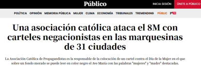 Por el contrario, el portal ReligionDigital tituló como Público y llamó 'negacionistas' a los promotores del Avemaría en marquesinas.