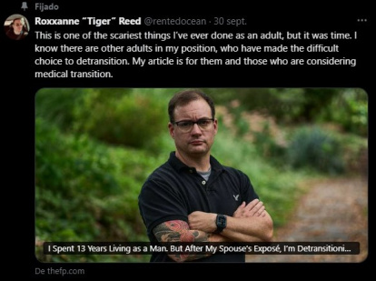 Empezó a pensar en lo que ahora ya es una decisión en la práctica: abandonar la testosterona para volver a ser mujer. Reprocha al sistema lo fácil que lo tuvo para 'transicionar' y lo difícil que será la 'detransición': "Mientras que mi transición fue pagada por el seguro, ni detransición no lo será. Restaurar mi línea capilar y quitarme el pelo del cuerpo me costará miles de dólares, y en los próximos años puede que me haga una reimplantación de senos. Y hay muchas preguntas para las que no tengo respuesta, como si mis hijos, que ahora tienen entre 2 y 16 años, seguirán llamándome 'Papá'. Quiero volver a ser Roxxanne y que mi carnet de conducir ponga de nuevo 'mujer'. Pero me pregunto si volveré a parecer una mujer".