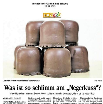 La presión también se extiende al ámbito culinario; por ejemplo, el término Negerkuss [beso de negro], para un dulce muy popular, ha sido eliminado en favor de Schokokuss [beso de chocolate], e incluso hay tendencias para sustituir el famoso Zigeunerschnitzel [escalope al estilo gitano] por Balkanschnitzel [escalope al estilo balcánico] o similares: el término “gitano” se considera un insulto racista y, desde hace décadas, se sustituye por Roma und Sinti, si bien en el caso del filete empanado no parece tener mucho éxito.