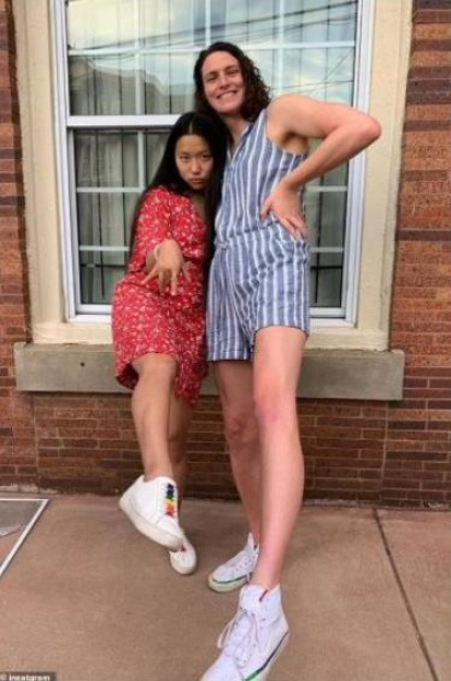 Will Thomas (derecha) junto a su compañera del equipo femenino, Hannah Liu.