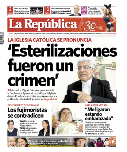 Ejemplar de La República de 1999; a la Iglesia y a quienes denunciaban las esterilizaciones las feministas les llamaban exagerados y enemigos del progreso y de la mujer