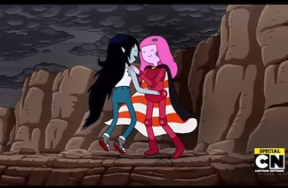 Estrenada en 2010, Hora de aventuras es una seria de aventuras fantásticas que mezcla humor y drama en un escenario surreal. El 3 de septiembre, el final de la serie incluyó una escena en la que dos personajes femeninos, Marcelina la Reina Vampiro y la Princesa Bubblegum, confirmaron años de insinuaciones y especulaciones por parte de los fans de que eran lesbianas al besarse en los labios.