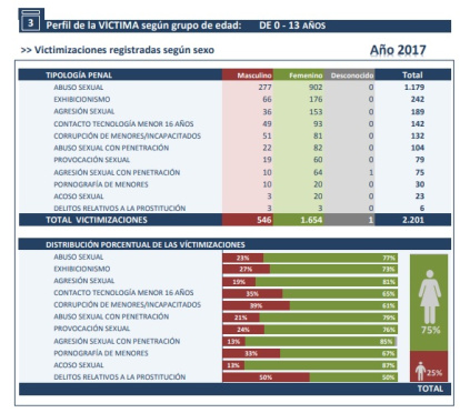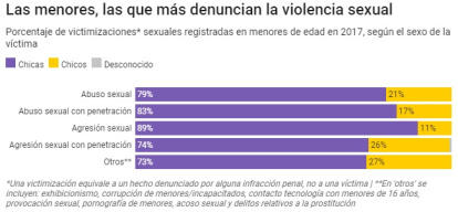 Eso contrasta con lo que se observa, por ejemplo, en el informe del Ministerio de Interior español sobre delitos sexuales con los datos hasta 2017 (léalo aquí completo): cuando las víctimas son menores de edad, el 80% de los abusos sexuales (sin violencia) y agresiones sexuales (con violencia) se ejercen contra chicas, no contra varones.
