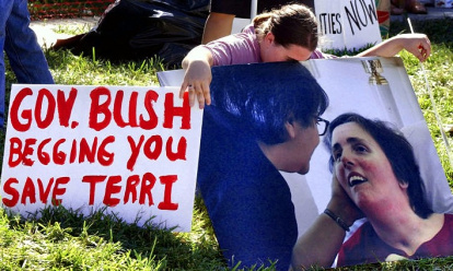Los defensores de Terri Schiavo pidieron a Jeb Bush que interviniese para salvarla. Aprobó una ley in extremis que le facultaba para reintubarla y así lo hizo, pero finalmente la ley fue declarada inconstitucional. En 2005 a la mujer le desconectaron la alimentación y murió.