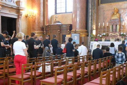 Ante el altar de San Martín de Tours. Y ahora lo han hecho hasta la ciudad húngara de Szombathely, donde nació, dentro de un periplo en el que pasaron también por Austria y Eslovaquia, siendo recibidos siempre con el afecto que se tienen por este cuerpo que, si bien desde la pérdida de los Estados Pontificios no tiene la importancia de otros tiempos, es algo más que una guardia de honores. Los jóvenes fueron homenajeados por las autoridades locales, rezaron ante el altar de San Martín de Tours y emprendieron camino de regreso. Benedicto XVI tiene un particular aprecio por la Guardia Suiza, evocando su historia y en particular "la valentía y el coraje de los primeros conferederados que en 1527 [cuando el saco de Roma] defendieron con total abnegación y hasta la muerte la persona del Soberano Pontífice, escribiendo con su sacrificio una importante página de la historia de la Iglesia". |