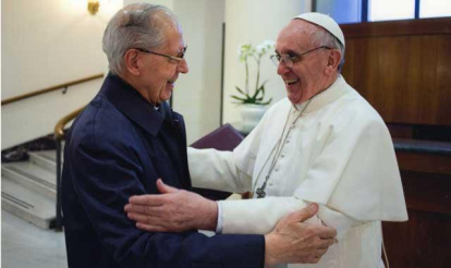 El Papa blanco abraza al «papa negro», el general de los jesuitas, Adolfo Nicolás