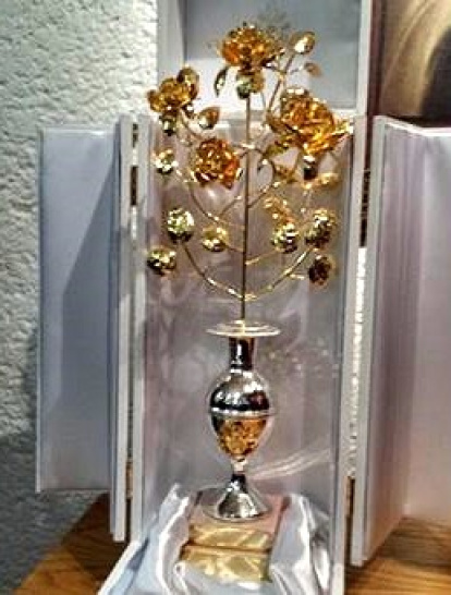 También estuvo presente el Papa Francisco con un videomensaje en el cual volvió a incidir en varios de sus mensajes recurrentes sobre la necesidad intrínseca de la misión en la Iglesia. Además envió una rosa de oro tamaño natural como regalo para la Virgen de Guadalupe (ver abajo la foto, tomada de Aciprensa), la cual será depositada a los pies de la imagen este domingo 17 de noviembre.