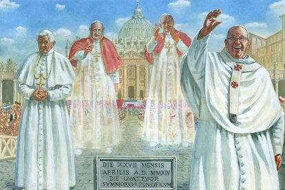 Juan Pablo II y Juan XXIII desde el Cielo; Francisco y Benedicto XVI, desde la tierra... el 27 de abril de 2014 pasará a la historia como "el día de los cuatro Papas".