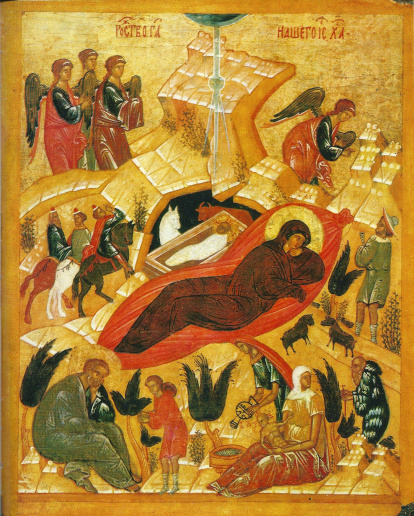 En algunas representaciones iconográficas, tanto de Occidente como de Oriente –pienso, por ejemplo, en el espléndido icono de la Natividad de Andréi Rubliov–, el Niño Jesús no aparece recostado en una cuna sino en un sepulcro.