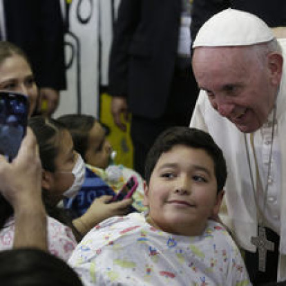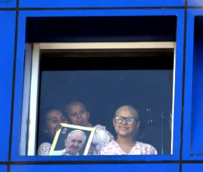 Francisco agradeció el trabajo de los médicos y el personal sanitario y pidió a Dios «que los bendiga y los acompañe, a ustedes y sus familias, a todas las personas que trabajan en esta casa y buscan que esas sonrisas de los niños sigan creciendo cada día».