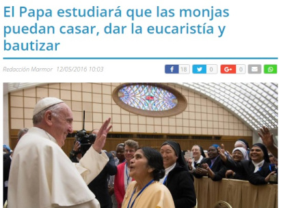 Con todo, la prensa internacional se ha centrado enseguida en el tema de las diaconisas con títulares como que "el Papa estudiará que las mujeres puedan casar, bautizar o conducir funerales".