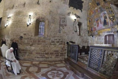 El Papa Francisco este jueves por la tarde acudió a la basílica de los Ángeles en Asís