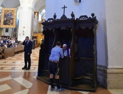 Y sin que estuviera previsto el Papa Francisco se colocó en un confesionario y confesó a 19 personas en una hora: un franciscano, dos sacerdotes, cuatro jóvenes scouts, una señora en silla de ruedas y 11 voluntarios del servicio de la Basílica.