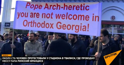 Popes ortodoxos en una manifestación contra el Papa en Tiflis: "Papa archi-herético, no eres bienvenido a la Georgia ortodoxoa".