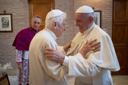 Georg Gänsswein asiste al abrazo de los dos Papas
