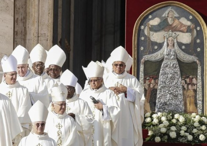 La solemnidad de Jesucristo, Rey del Universo corona el año litúrgico y este Año santo de la misericordia. El Evangelio presenta la realeza de Jesús al culmen de su obra de salvación, y lo hace de una manera sorprendente. «El Mesías de Dios, el Elegido, el Rey» (Lc 23,35.37) se presenta sin poder y sin gloria: está en la cruz, donde parece más un vencido que un vencedor.
