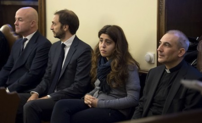 De izquierda a derecha, Gianluigi Nuzzi, Emiliano Fittipaldi, Francesca Immacolata Chaouqui y Lucio Ángel Vallejo Balda, durante el juicio.