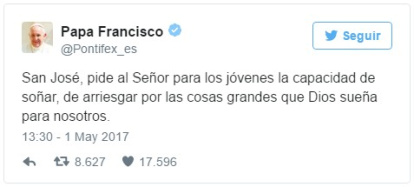Francisco unió a San José Obrero y a los jóvenes en su mensaje de Twitter para este 1º de mayo