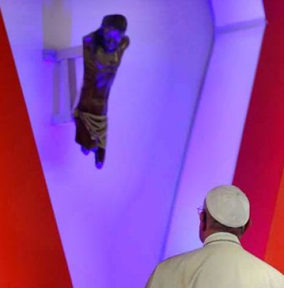 Ver a Cristo así, mutilado y herido, nos interpela. Ya no tiene brazos y su cuerpo ya no está, pero conserva su rostro y con él nos mira y nos ama. Cristo roto y amputado, para nosotros es «más Cristo» aún, porque nos muestra una vez más que Él vino para sufrir por su pueblo y con su pueblo; y para enseñarnos también que el odio no tiene la última palabra, que el amor es más fuerte que la muerte y la violencia.