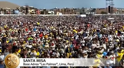 Aproximadamente a las siete de la tarde, hora local (la una de la madrugada en España), el avión que traslada a Francisco de regreso a Roma partió del aeropuerto militar Grupo Aéreo nº 8 de Lima, donde fue despedido por el presidente Pedro Pablo Kuczynski. Queda atrás una semana de viaje pastoral a Chile y Perú que concluyó con el acto más multitudinario: la misa en la base aérea de Las Palmas de la capital peruana, con una asistencia estimada de 1.300.000 personas.
