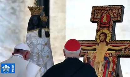 El acto concluyó con la bendición por el Papa de las imágenes de la Virgen de Loreto y del Crucifijo de San Damián que llevarán los jóvenes italianos a la Jornada Mundial de la Juventud que se celebrará en Panamá del 22 al 27 de enero.