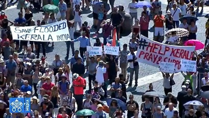 Tras impartir la bendición, Francisco invitó a rezar de nuevo, por Kerala, en la India, donde las inundaciones han dejado cientos de muertos.