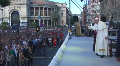 Finalmente, el Santo Padre bendijo a todos los presentes en la Plaza Politeama. “Sé que entre vosotros hay jóvenes católicos, cristianos, de otras tradiciones religiosas, y también algunos agnósticos. Es por eso que bendeciré a todos y le pediré a Dios que bendiga la semilla de la inquietud que está en su corazón”: "Señor, Señor Dios, mira a estos jóvenes. Conoces a cada uno de ellos, sabes lo que piensan, sabes que quieren seguir adelante, para hacer un mundo mejor. Señor, hazlos buscadores del bien y de la felicidad, hazlos activos en el camino y en el encuentro con los demás, hazlos audaces en el servir, hazlos humildes en la búsqueda de las raíces y seguir adelante para dar frutos, tener identidad, tener pertenencia. Que el Señor, el Señor Dios, acompañe a todos estos jóvenes en su camino y los bendiga a todos. Amén".