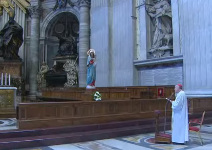 El cardenal Angelo Comastri, desde la Basílica de San Pedro, rezó el Ángelus y el Rosario después del Padrenuestro convocado por el Papa
