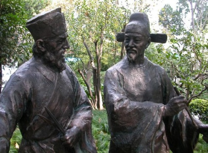Estatua de Matteo Ricci junto a su amigo Pablo Xu Guangqi en la tumba del sabio chino en Xujiahui, en Shanghai.