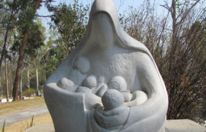 En la parte de atrás del predio hay una imagen de piedra de la Virgen María como Madre de los Niños no Nacidos, que la muestra acurrucando a muchos niños en sus brazos. Una placa reza: “Jesús, protege y salva a los niños no nacidos”. La escultura también fue donada, en este caso, por la Asociación Armada Blanca, cuyo apostolado es el rezo del rosario con los niños.