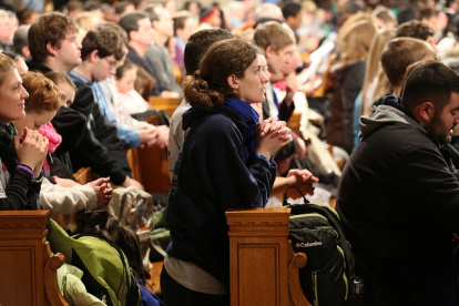 La oración previa a la Marcha por la Vida es agotadora para muchos peregrinos, que han llegado haciendo muchas horas de autobús.