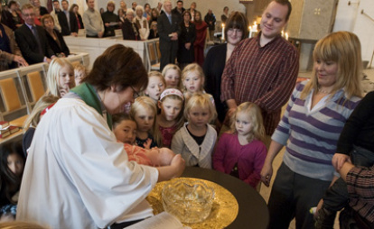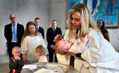 Una pastora sueca en el bautizo de un bebé - queda bonito en la foto, pero no atrae fieles a la iglesia