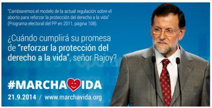 Uno de los carteles de la Marcha por la Vida recordando el programa electoral del PP en 2011