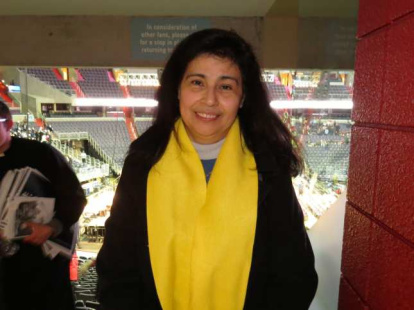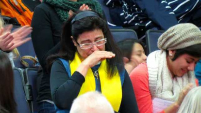 Rosa Majano, la madre y protagonista de la historia, llora emocionada mientras le aplaude todo el Verizon Center (foto de Pete Baklinski, de LifeSiteNews)