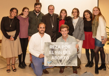 El obispo auxiliar de Madrid, monseñor Santos Montoya, con el equipo de 40 Días por la Vida en Madrid