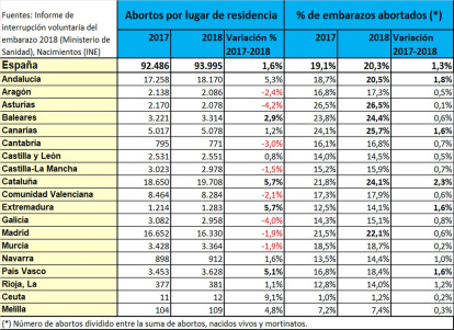 El director del Foro de la Familia, Javier Rodríguez, considera que el aborto en España "se está convirtiendo en un método anticonceptivo". "Por un lado, es un fracaso de las políticas de salud y concienciación del Gobierno, que ha permitido el incremento en su número, que asciende hasta los 95.917 inocentes (unos 263 al día) y, por otro, se están normalizando estas cifras, que ya suponen alrededor de una cuarta parte respecto al número de nacimientos en nuestro país (391.265 en 2017)".
