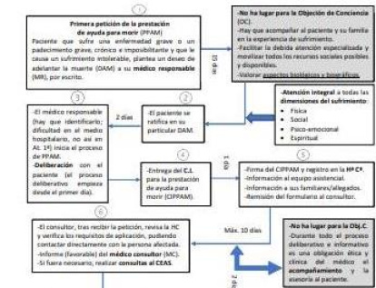 Desde que el paciente solicita al profesional sanitario la ayuda médica para morir, comienza un proceso de diez fases en las que únicamente dos son susceptibles de objeción por parte del profesional sanitario.
