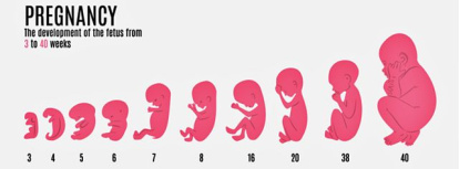 La apariencia del embrión y del feto es perfectamente conocida y es ésta, entre las 3 y las 40 semanas de embarazo: