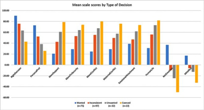 Según el tipo de decisión tomada (deseada, incoherente, no deseada, coaccionada), se ve en el diagrama creado por los autores que el aborto solo obtiene una consideración satisfactoria en el 24% de madres que abortan con la convicción de que es la decisión correcta.